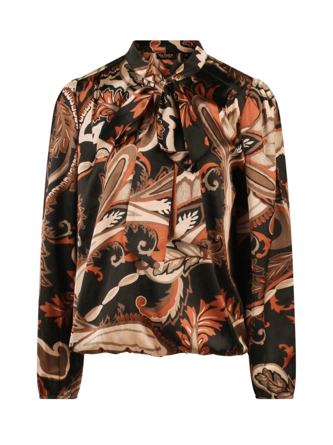 Deze satijnen dames top met bloemdessin is een elegante toevoeging aan je garderobe! De glanzende satijnstof voelt heerlijk zacht aan en geeft een luxe uitstraling. De verfijnde bloemenprint en vrouwelijke strikkraag zorgen voor een romantische en stijlvolle look. Perfect te combineren met een jeans of rok voor zowel een casual als geklede outfit.
