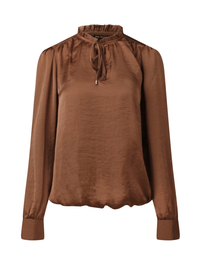 Deze satijnen look top heeft een luxe uitstraling door de stof. Met leuke details zoals de ruche rond de hals, het koordje en het elastiek in de taille. Je combineert deze mooie blouse eenvoudig met een nette pantalon en blazer. Hou je meer van casual? Hij doet het ook goed op een mooie jeans!