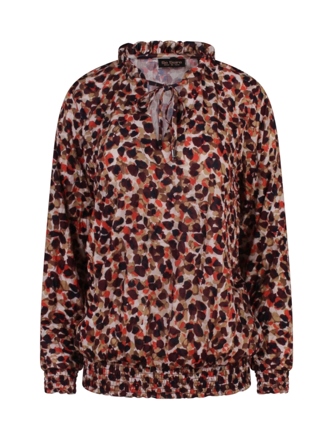 De gesmockte details zorgen voor een speelse en vrouwelijke touch, terwijl de stof comfortabel en soepel draagt. Een echte eyecatcher die zowel casual met een jeans als stijlvol met een rok of pantalon gedragen kan worden.