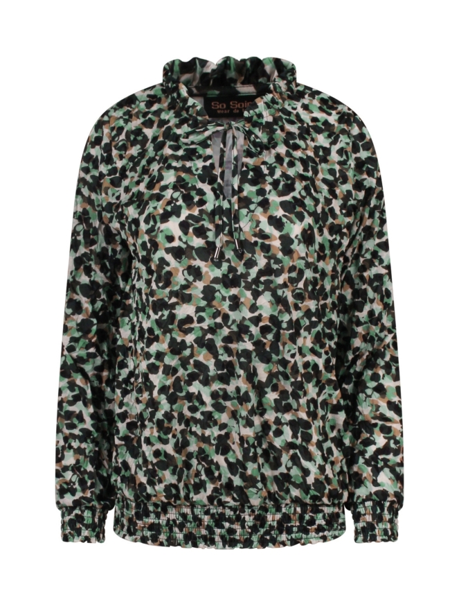 De gesmockte details zorgen voor een speelse en vrouwelijke touch, terwijl de stof comfortabel en soepel draagt. Een echte eyecatcher die zowel casual met een jeans als stijlvol met een rok of pantalon gedragen kan worden.