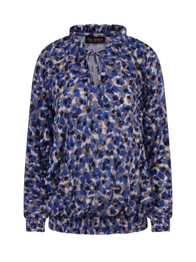 De gesmockte details zorgen voor een speelse en vrouwelijke touch, terwijl de stof comfortabel en soepel draagt. Een echte eyecatcher die zowel casual met een jeans als stijlvol met een rok of pantalon gedragen kan worden.