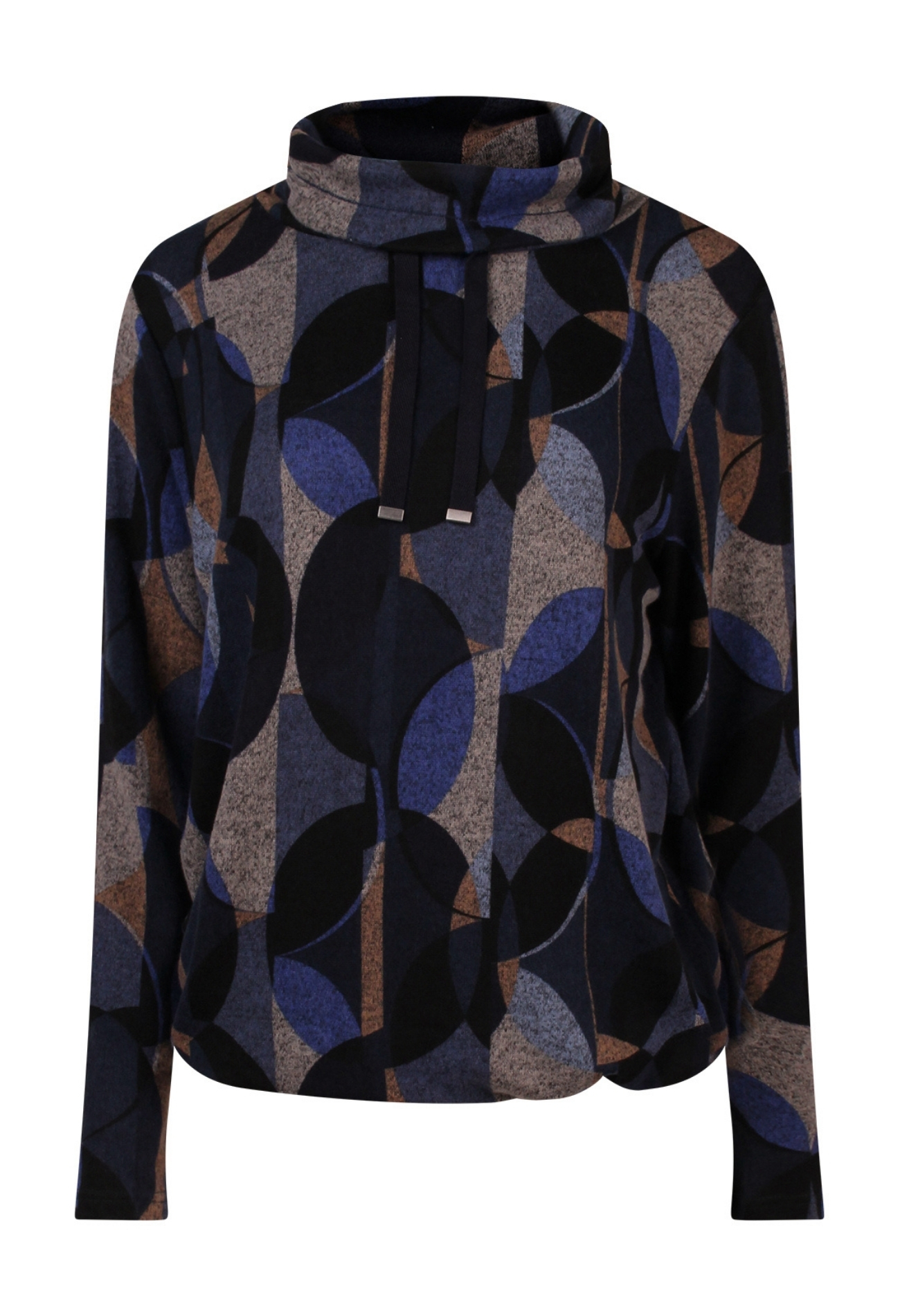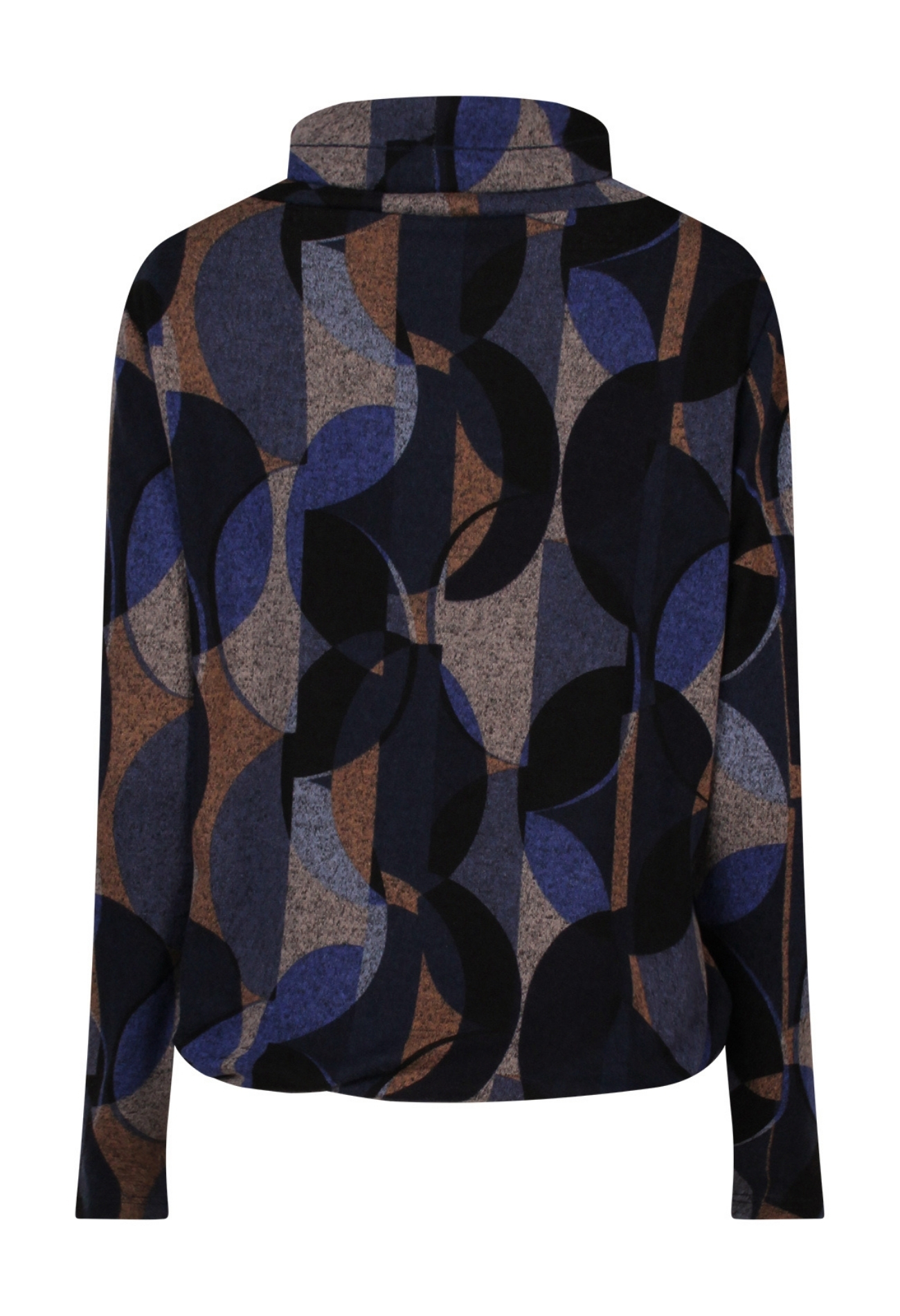 Deze trui is geen dikke maar een dunner exemplaar en heerlijk zacht! Met een fijne col en een mooi cirkel patroon is deze trui net even anders dan je gewend bent! Onder in de taille zit een koordje welke je makkelijk wat strakker kan zetten als je hem wat wilt laten bollen.