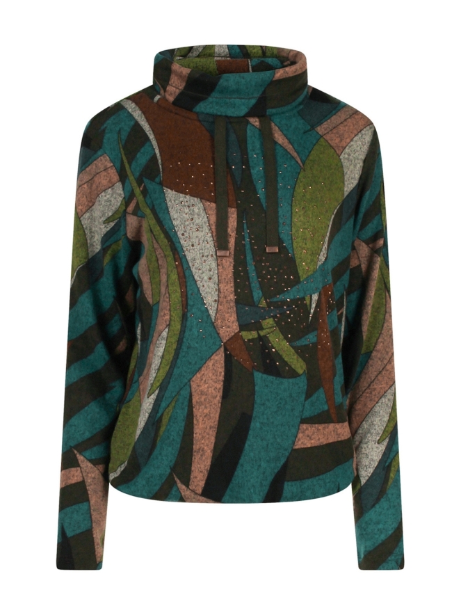 Deze trui met een kol en een koord doet aan als een sweater maar is fijn gebreid. Met opvallend design en de nodige strasstenen is dit een blikvanger!