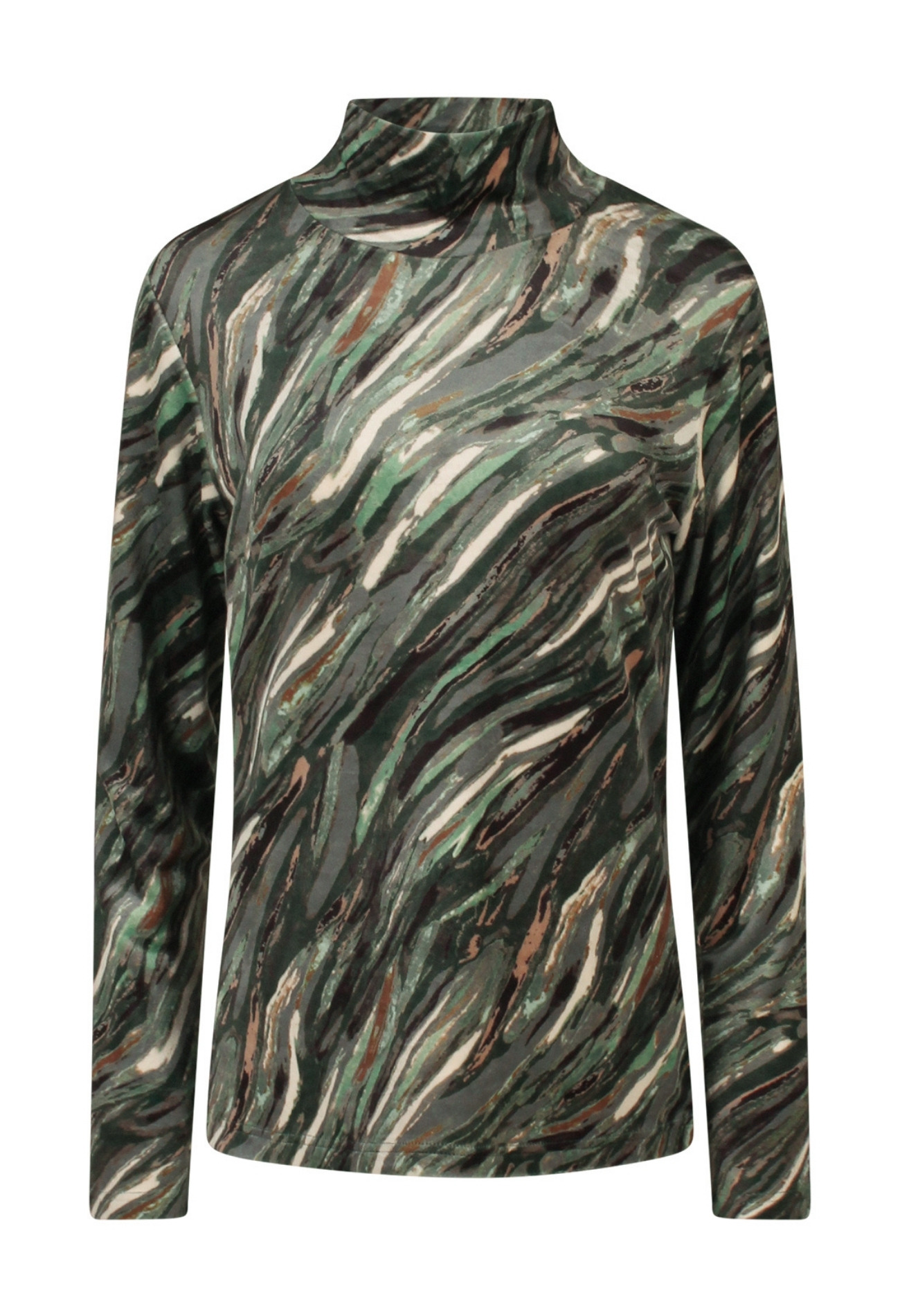 Super zachte koltrui van velours met een wild streeppatroon. Deze koltrui is geen dunnetje maar is echt wat dikker.