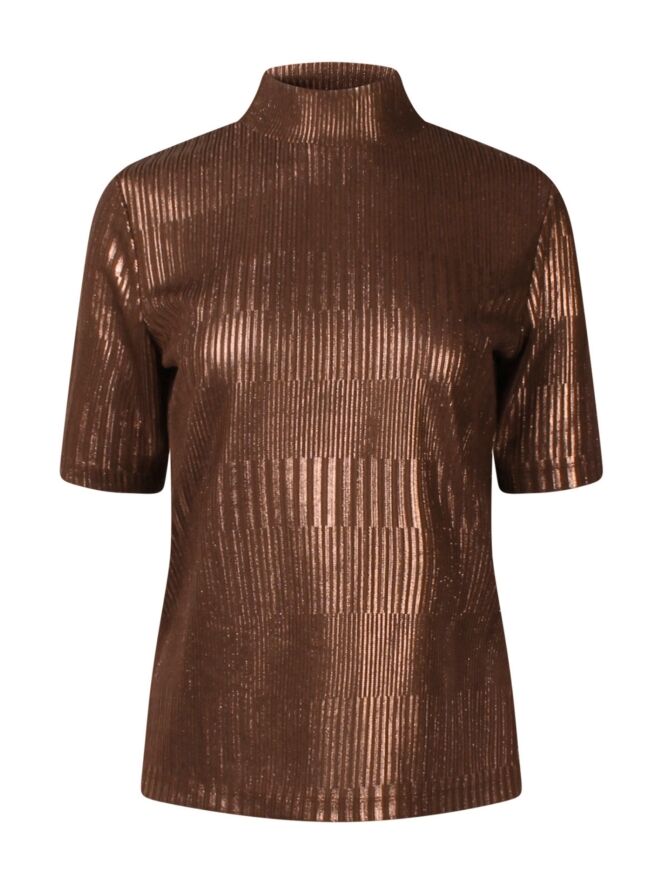 Fancy top met een metallic coating en turtleneck. Dit shirt draag je eenvoudig onder een vest en geeft je look de finishing touch! Ook ontzettend leuk om veelvuldig te dragen in de aankomende feestmaand.