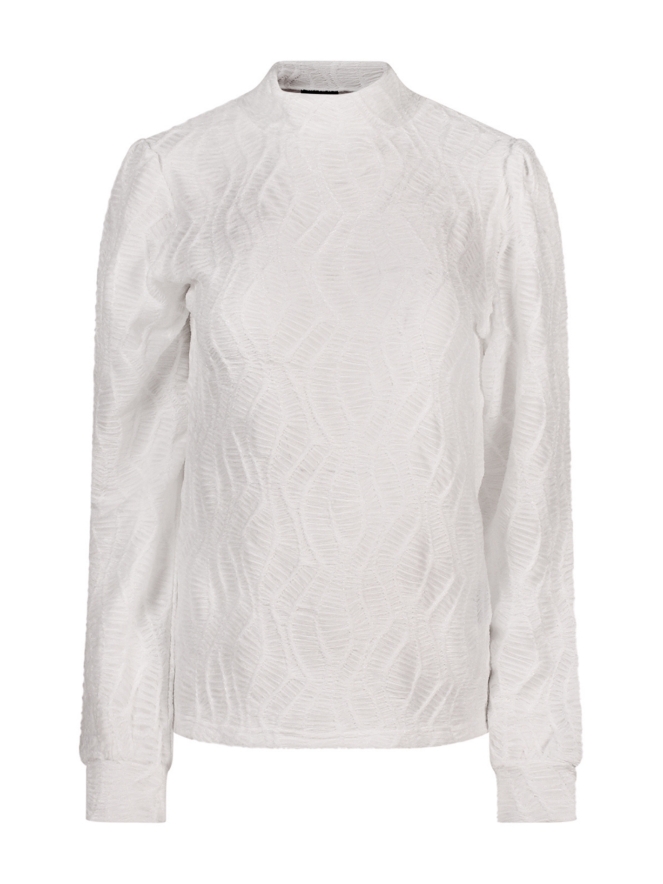 Fraaie top met een turtleneck die jou lekker warm houdt! De reliefstof van deze top is wel echt bijzonder met een golvend patroon en 4 way stretch!