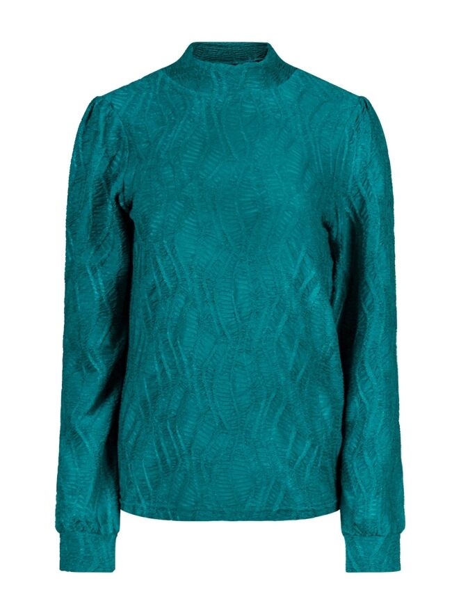 Fraaie top met een turtleneck die jou lekker warm houdt! De reliefstof van deze top is wel echt bijzonder met een golvend patroon en 4 way stretch!