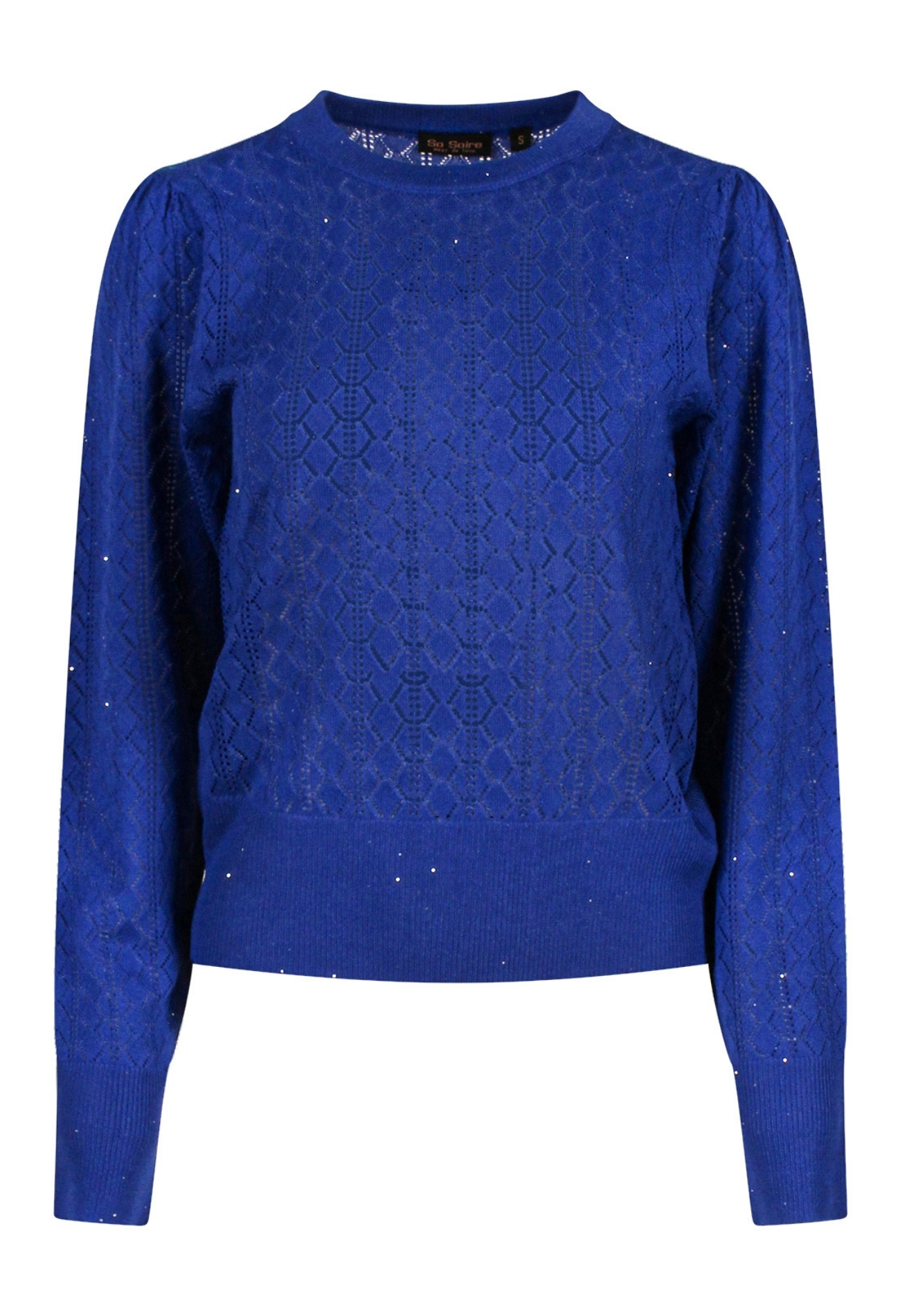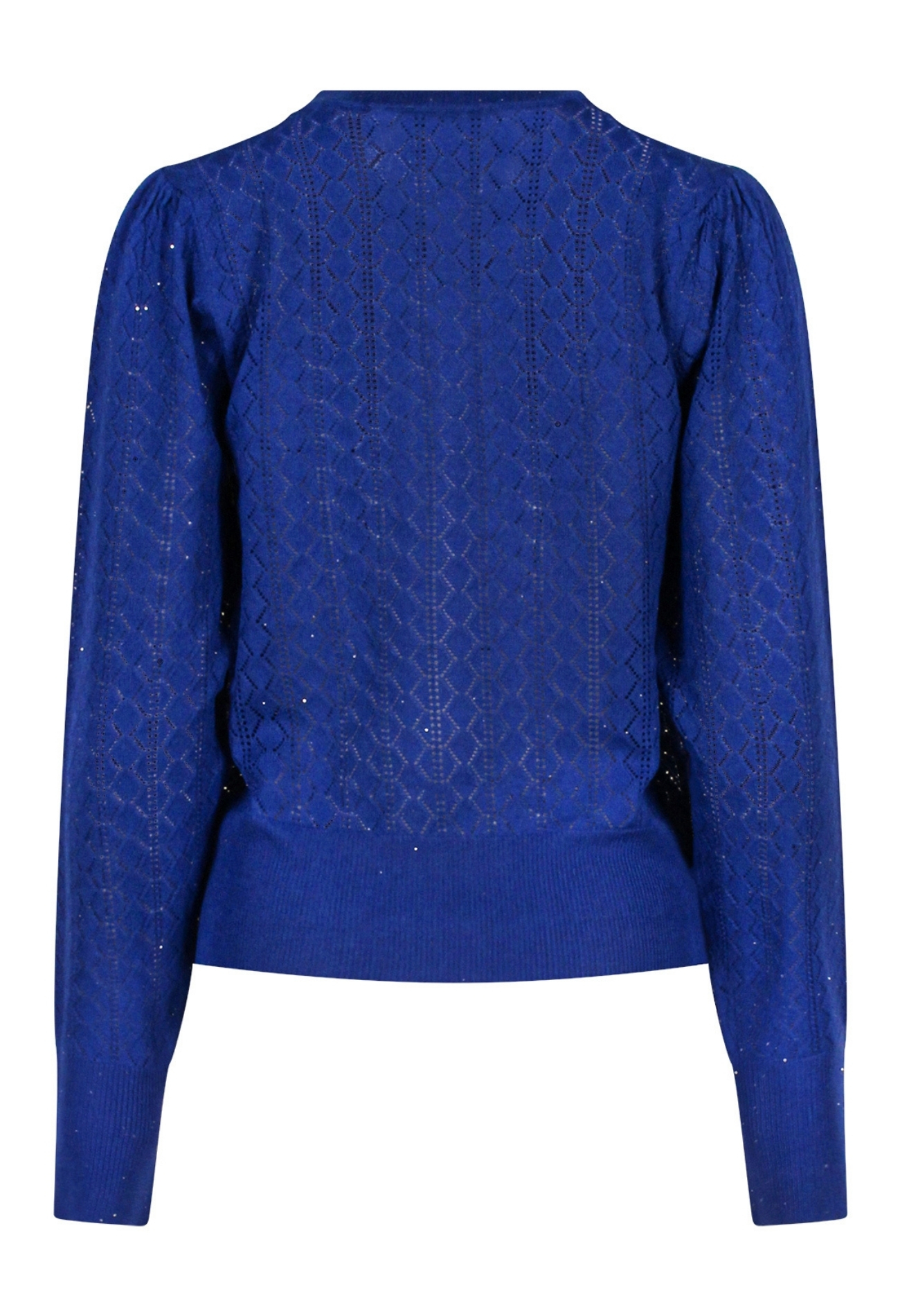 Dunne trui heeft een ajourbreisel en is dus doorschijnend. We adviseren dan ook om er een hemdje onder te dragen. Ideaal voor het najaar, voorjaar of frisse avonden in de zomer. Met een leuk bescheiden glittertje er in in de vorm van mini pailletten.