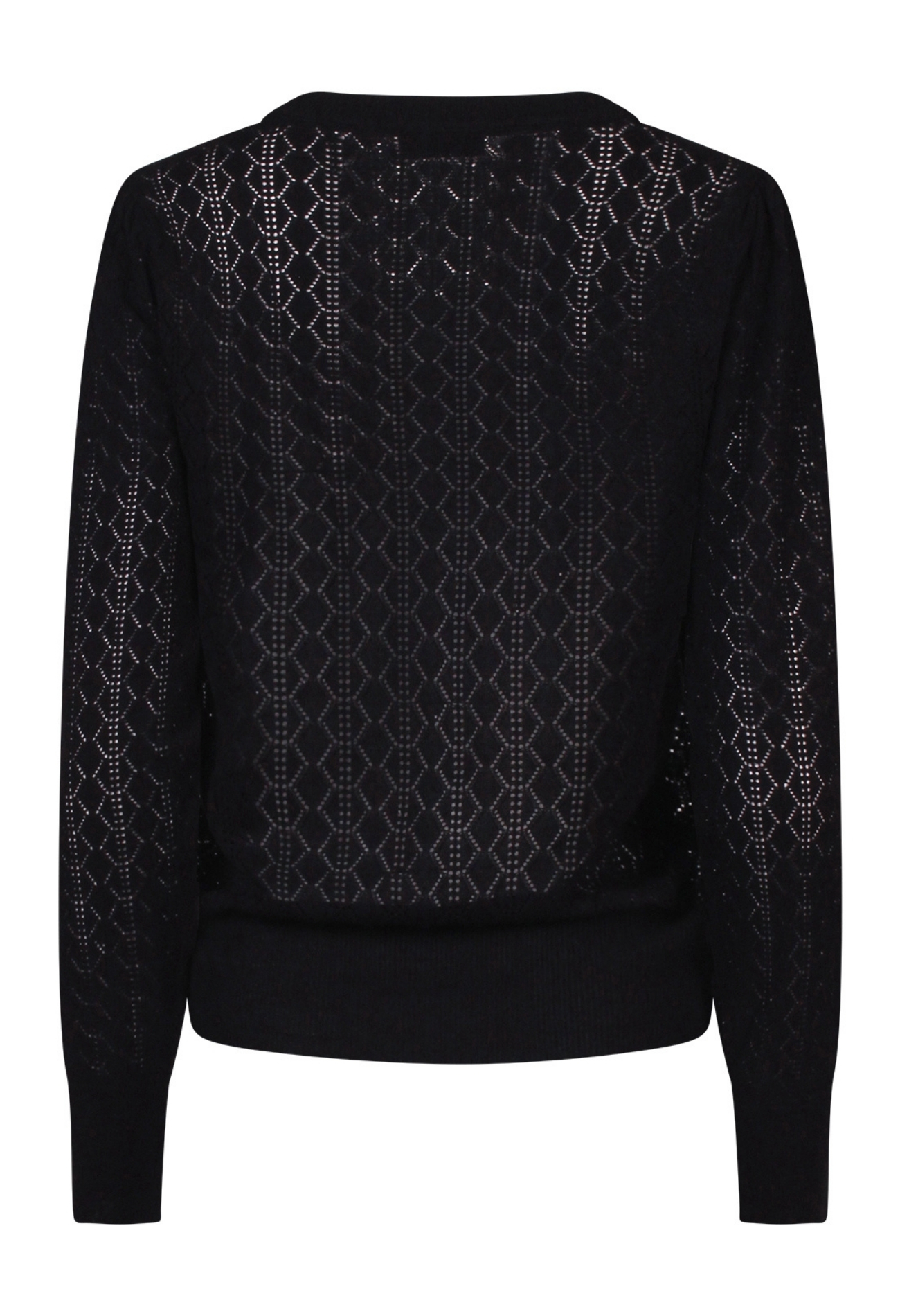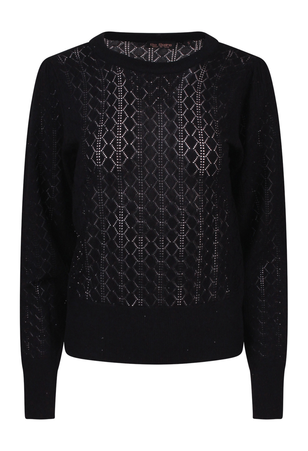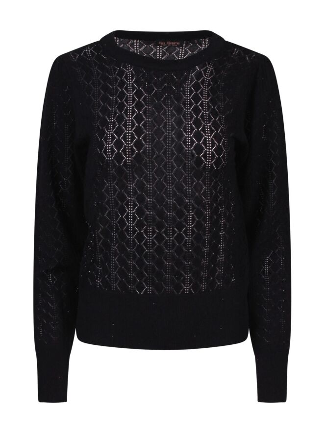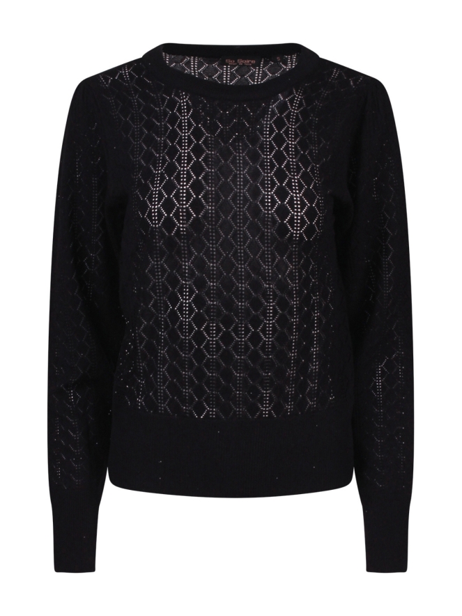 Dunne trui heeft een ajourbreisel en is dus doorschijnend. We adviseren dan ook om er een hemdje onder te dragen. Ideaal voor het najaar, voorjaar of frisse avonden in de zomer. Met een leuk bescheiden glittertje er in in de vorm van mini pailletten.