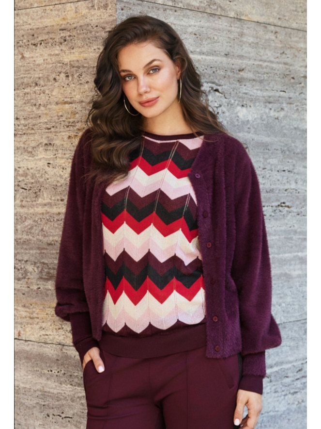 Prachtige dunne trui met een mooi meerkleurig zigzag design. Deze trui heeft een klein glittertje in de stof wat hem extra speciaal maakt!