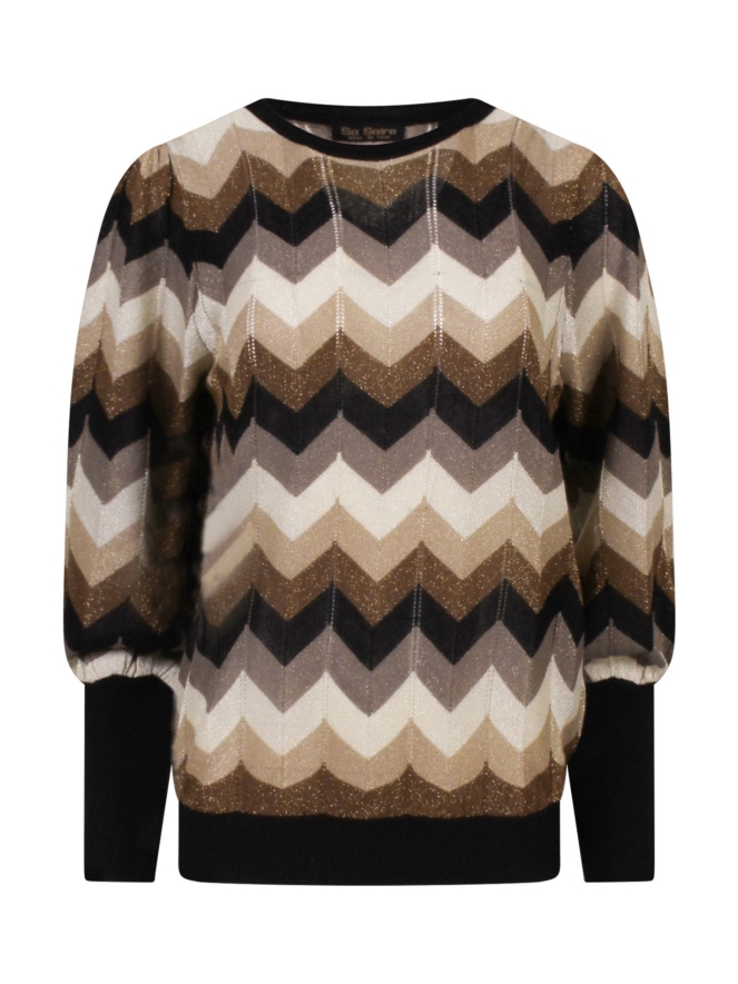Prachtige dunne trui met een mooi meerkleurig zigzag design. Deze trui heeft een klein glittertje in de stof wat hem extra speciaal maakt!