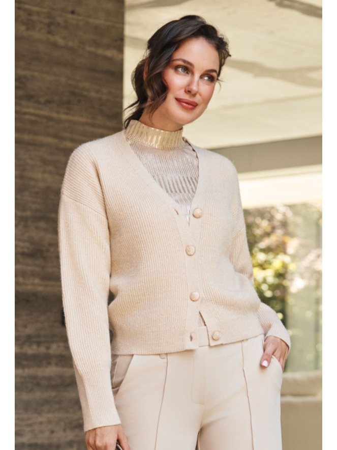 Fancy vestje met een subtiel breisel in het garen. Dit vest is een iets korter model en sluit met sierlijke knopen. Dit wordt jouw nieuwe favoriet deze winter!