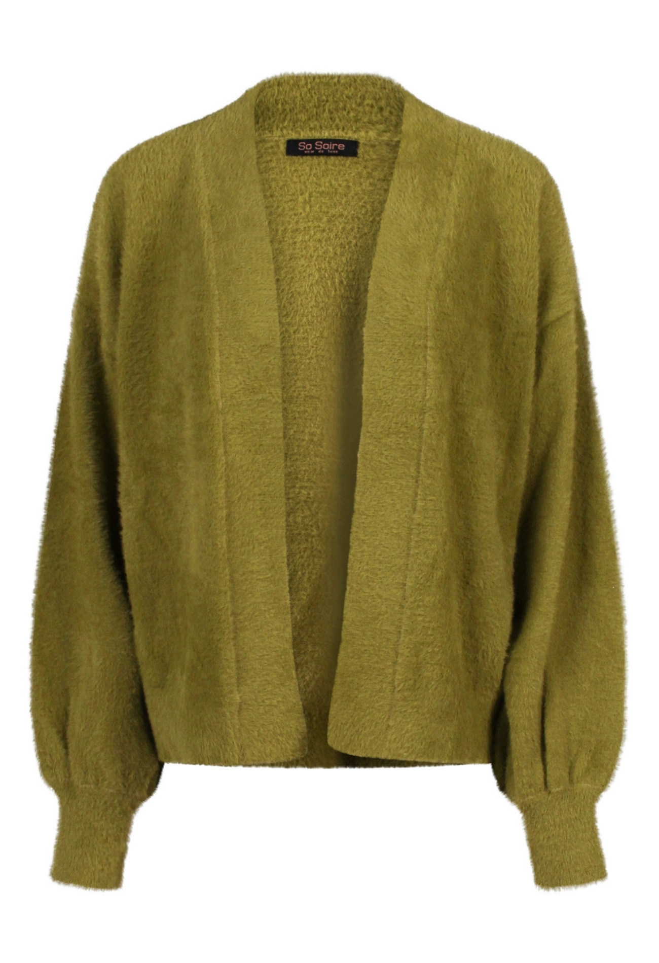 Zacht openvallend vest van featheryarn met een ballonmouw. Dit vest draag je gemakkelijk over vele tops, shirts en blouses.