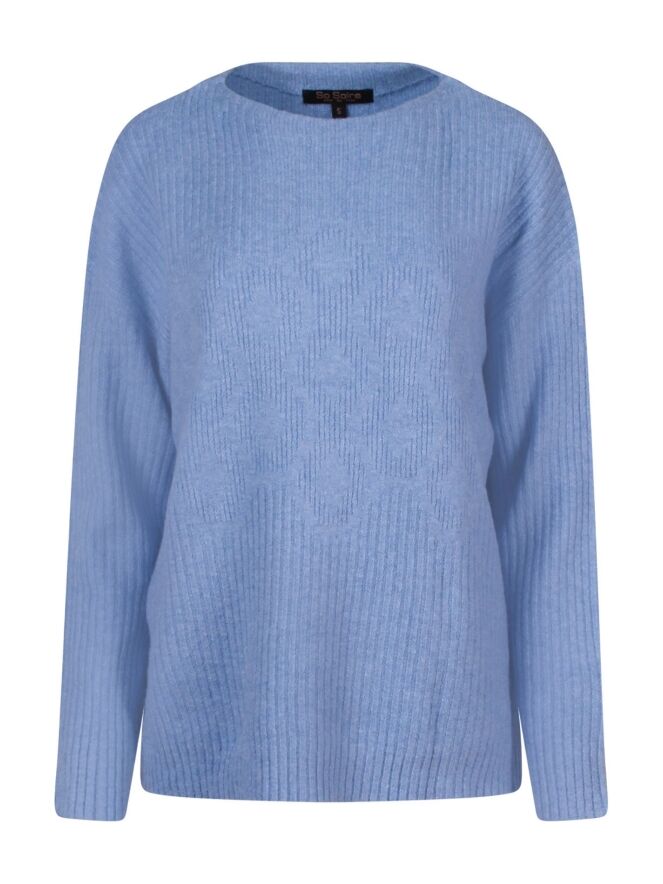 Heerlijke zachte dunne trui met sierlijk rib kabelpatroon erin verwerkt. Leuk te dragen op een denimrok of broek!