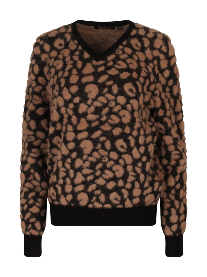 Deze trui van featheryarn heeft een mooie dierlijke print en een kleine V-hals. De featheryarn zorgt voor een pluizig effect. Leuk te combineren voor een casual look op jeans.