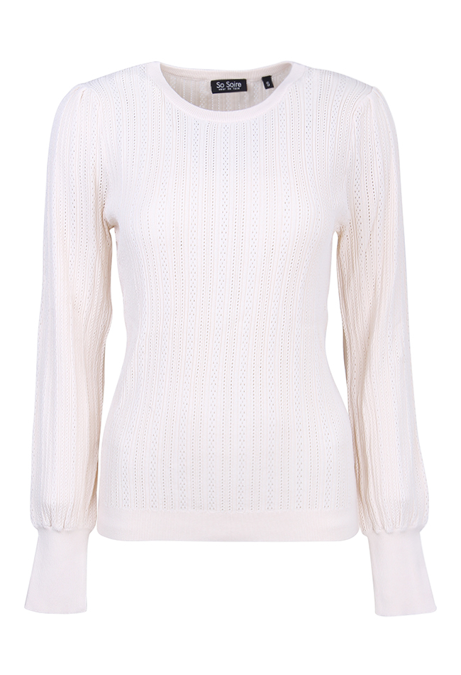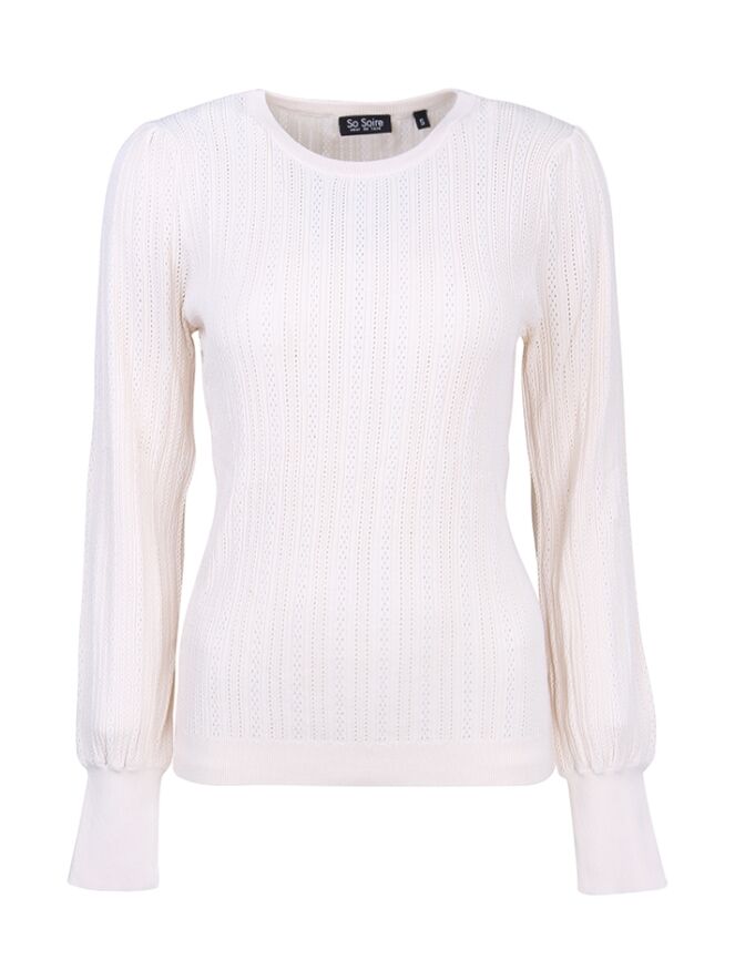 Trui voor dames van So Soire.De trui heeft een ajour brei stof.Kwaliteit: 67% viscose, 33% nylon.