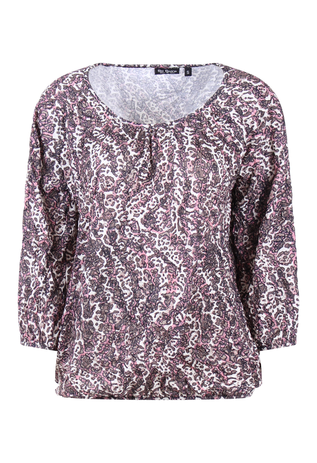 Crushed t-shirt van So Soire. Het t-shirt heeft een gekreukeld effect en een all over print. Er zit elastiek in de onderkant. Valt oversized. Materiaal: 100% polyester. Wassen op 30 graden, niet bleken, niet in de droger, kan gestreken worden.