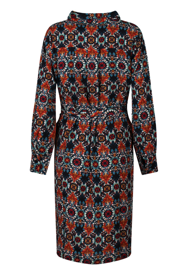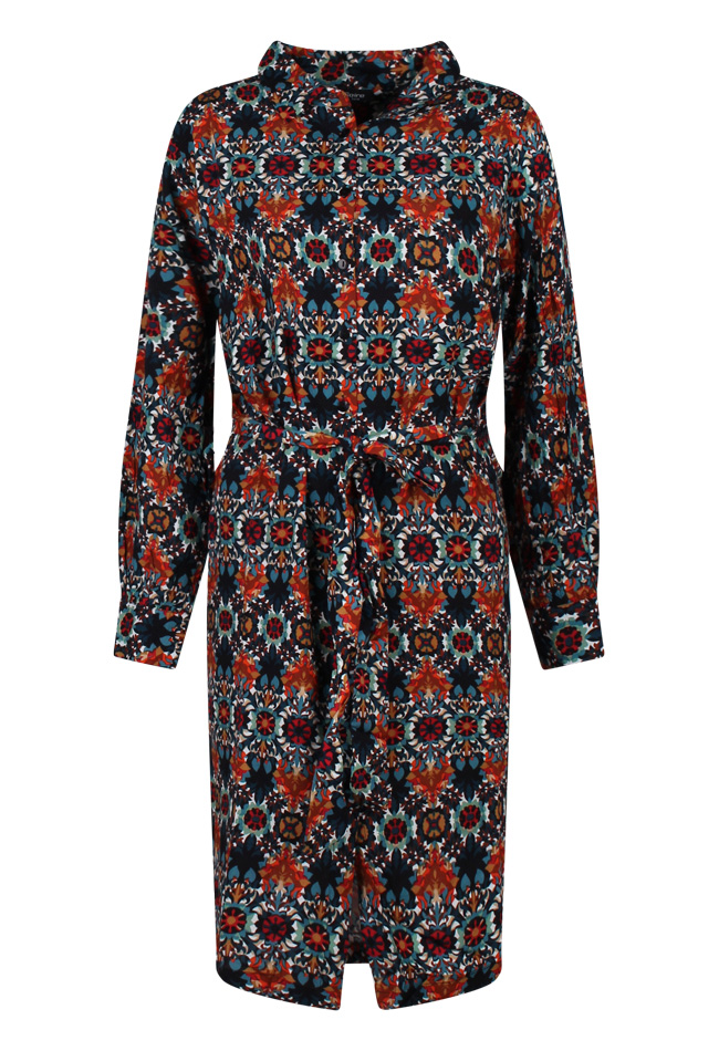 Blouse jurk met retro bloem design en strikceintuur.