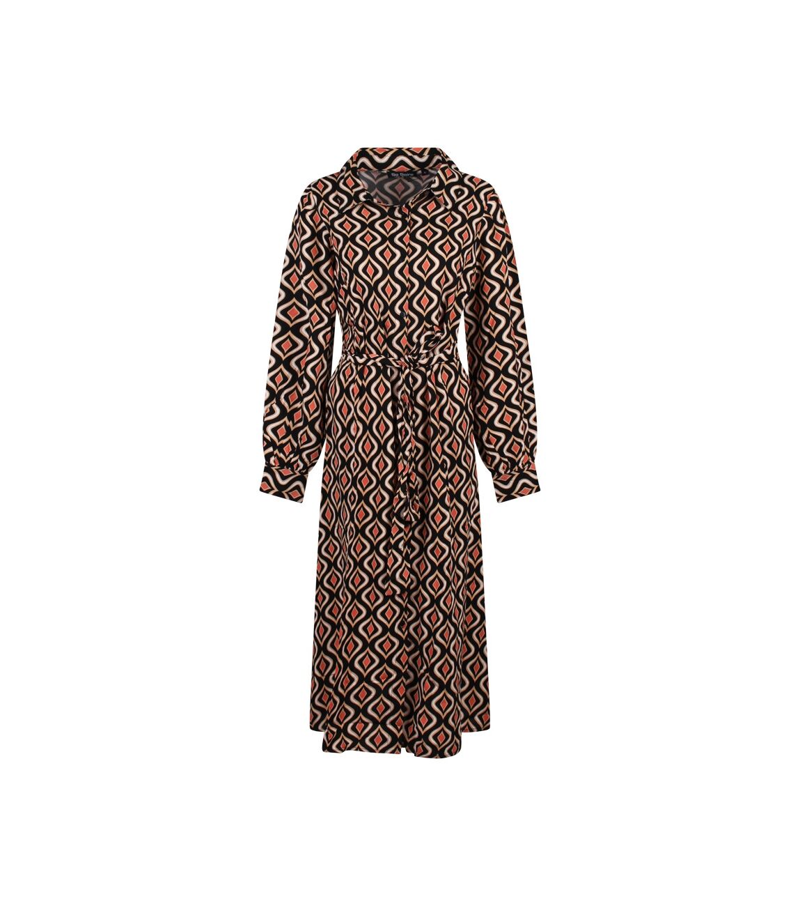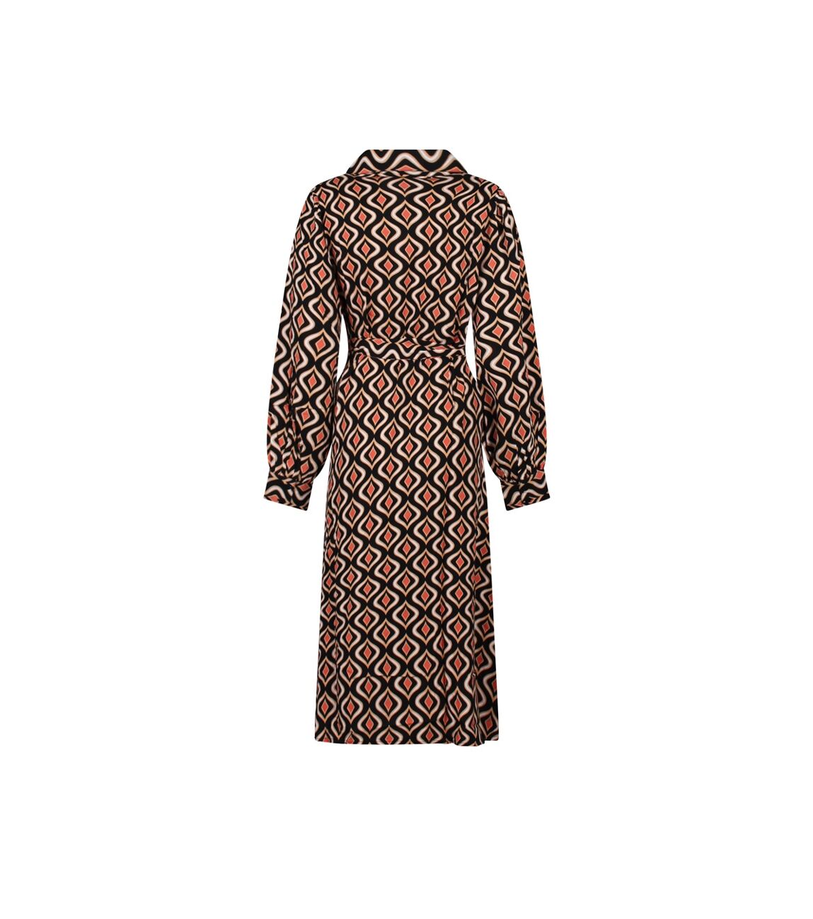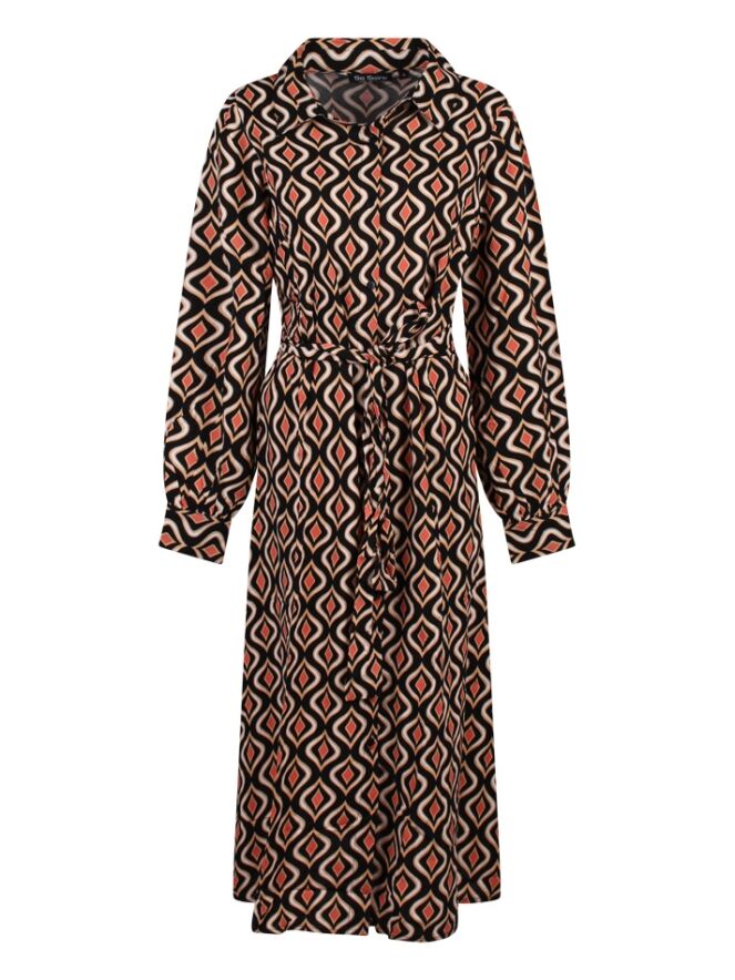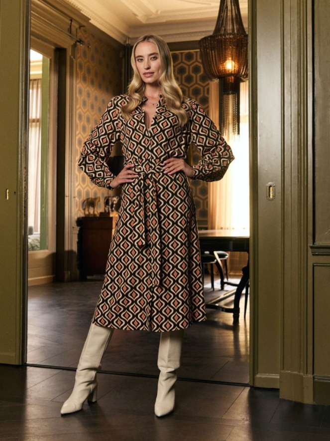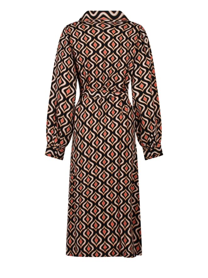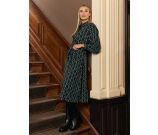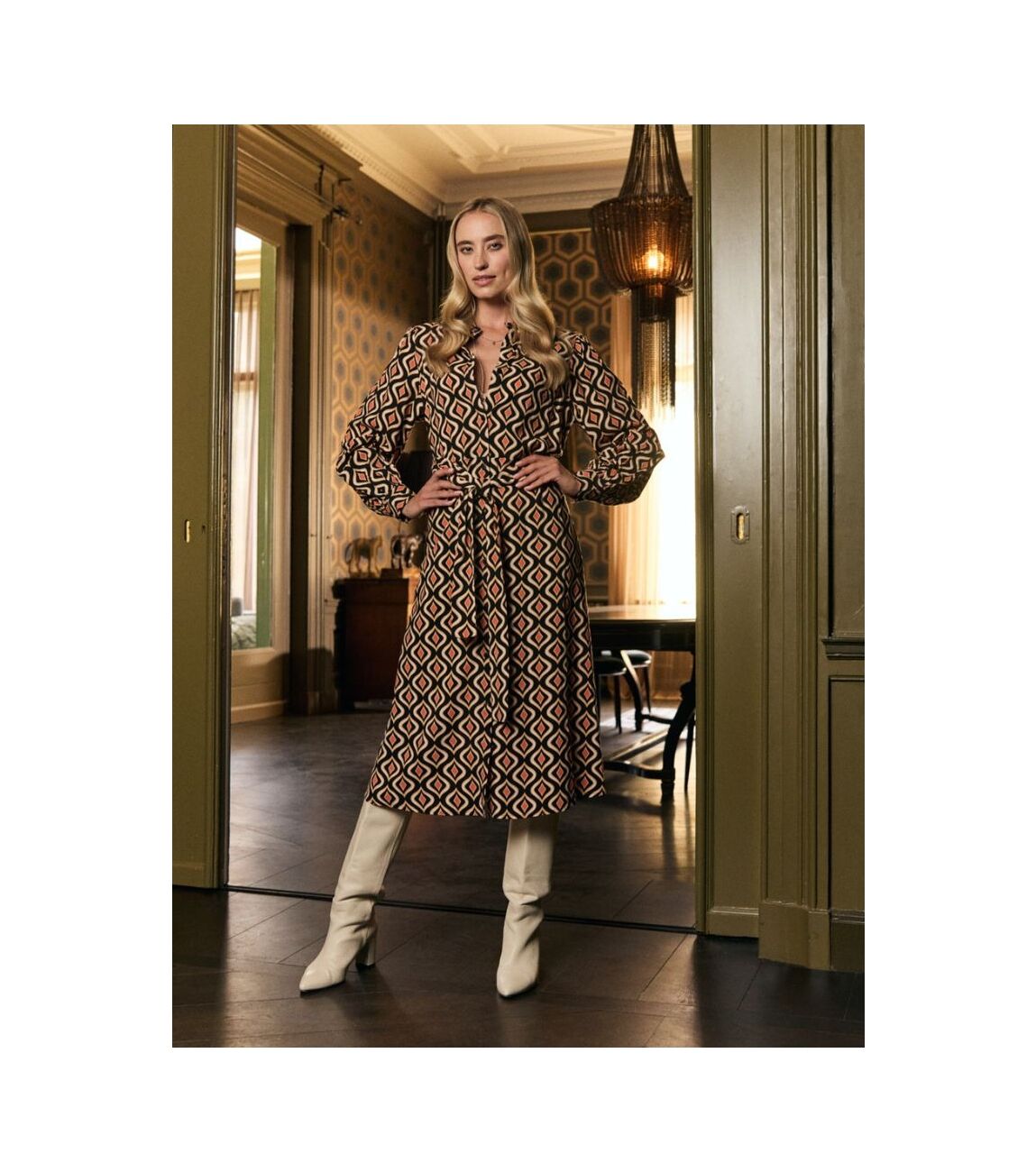 Lange blouse jurk met knopen met een retro dessign. Deze jurk heeft pofmouwen.