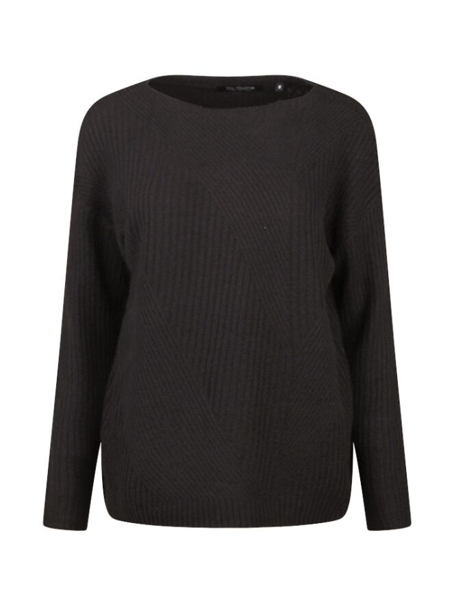 Zachte trui met een ribbreipatroon en ronde hals. Deze trui valt iets ruimer.