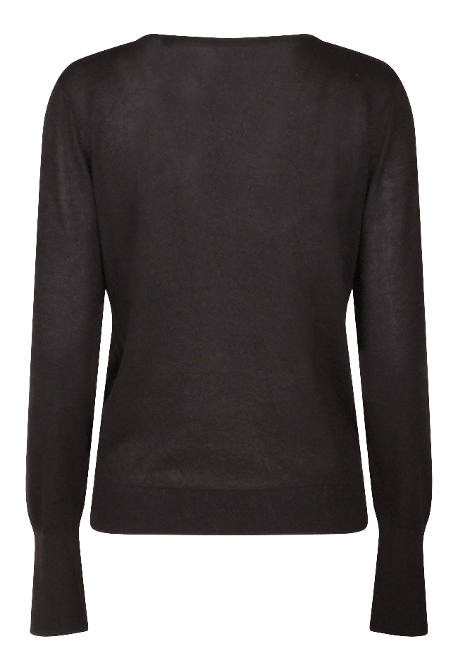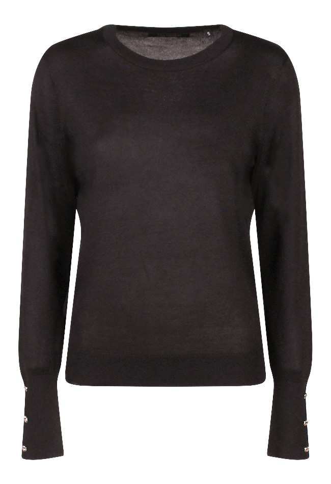 Fijn gebreide trui met glimmend lurexdraad. Deze elegante trui heeft een ronde hals en stijlvolle hoge manchetten met sier knoopjes aan de mouwen.
