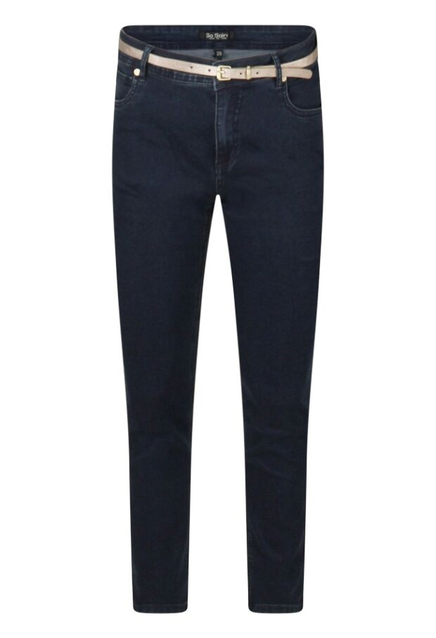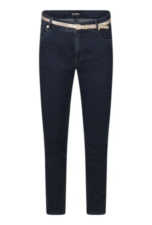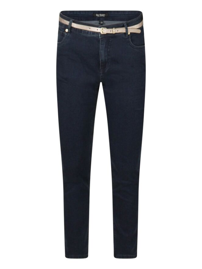 Dit is een dames jeans van een fijne stretch stof, hierdoor is her een fijne jeans om te dragen. Naast de gouden riem met een glans heeft de jeans op de achterzakken subtiele strass steentjes. De lengte maat van deze jeans is 30.