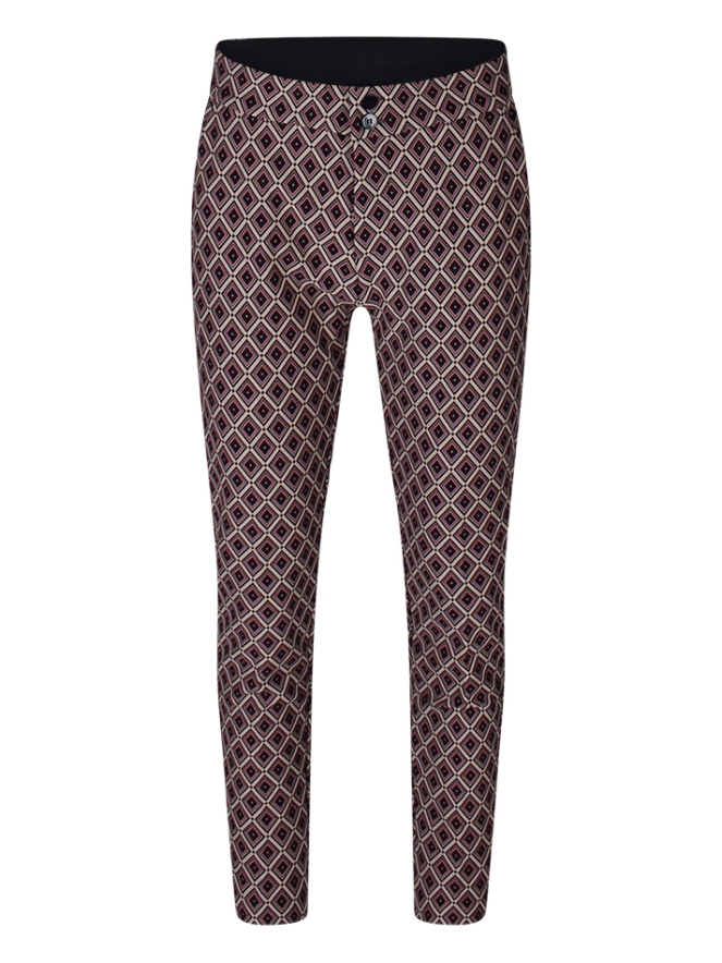 Pantalon met ruitpatroon, voorzien van elastiek in de tailleband voor extra draagcomfort. De broek sluit met een knoop en ritssluiting en heeft twee handige steekzakken. Combineer de pantalon met bij passende blazer - w90362 of met een top met dezelfde kleuren.