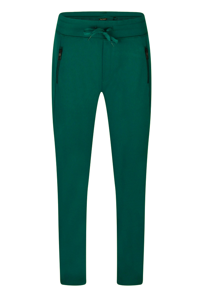Een stijlvolle pantalon met rechte broekspijpen, voorzien van zakken met ritssluiting. De taille heeft elastiek en een trekkoord voor een perfecte pasvorm.