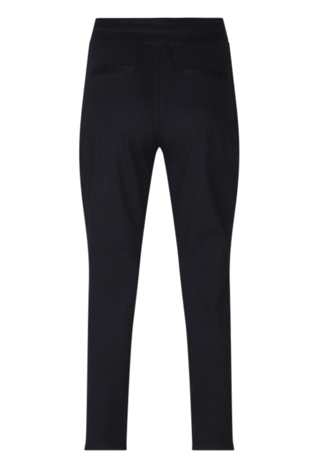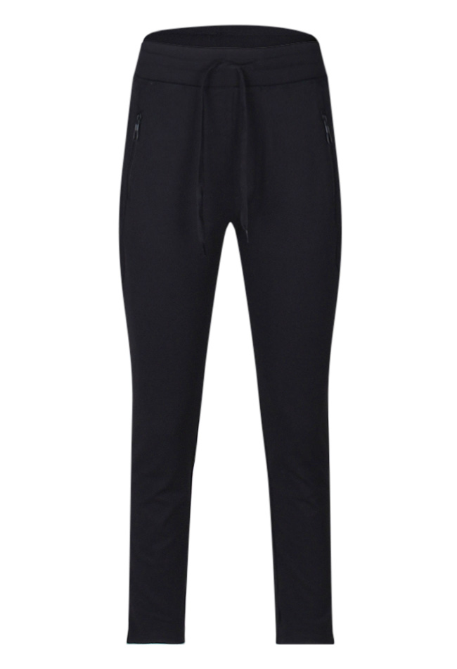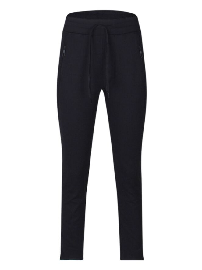 Een stijlvolle pantalon met rechte broekspijpen, voorzien van zakken met ritssluiting. De taille heeft elastiek en een trekkoord voor een perfecte pasvorm.