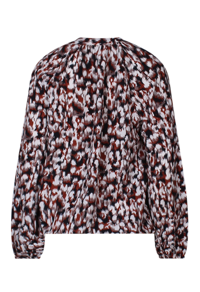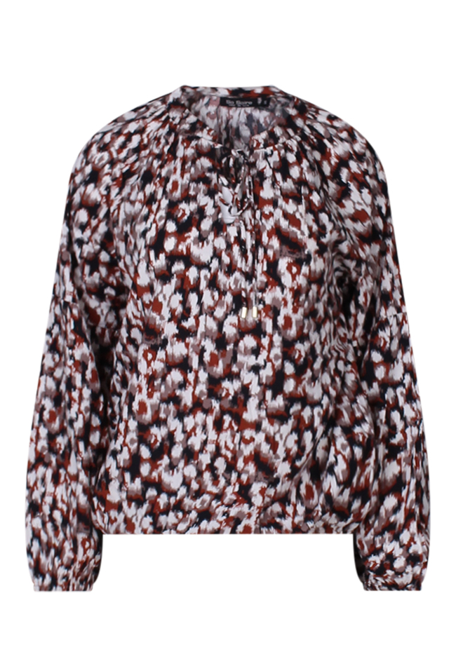 Deze dames top heeft lange ballonmouwen met elastische boorden voor een goede pasvorm. De ronde hals is voorzien van een V-strikdetail. Het aquarel animal print voegt een trendy touch toe aan de top.