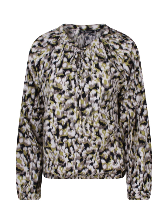 Deze dames top heeft lange ballonmouwen met elastische boorden voor een goede pasvorm. De ronde hals is voorzien van een V-strikdetail. Het aquarel animal print voegt een trendy touch toe aan de top.