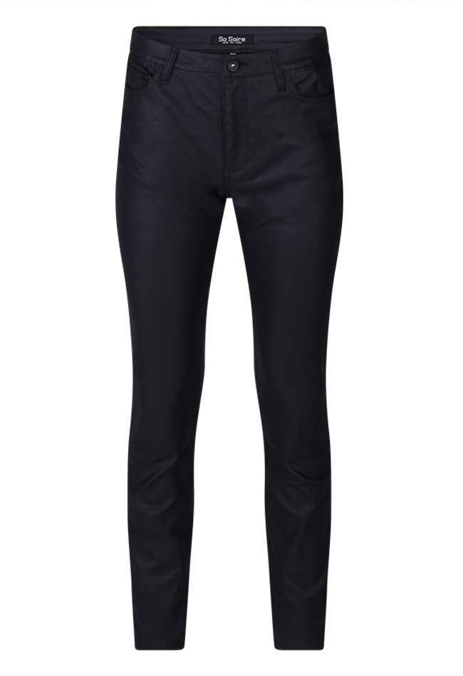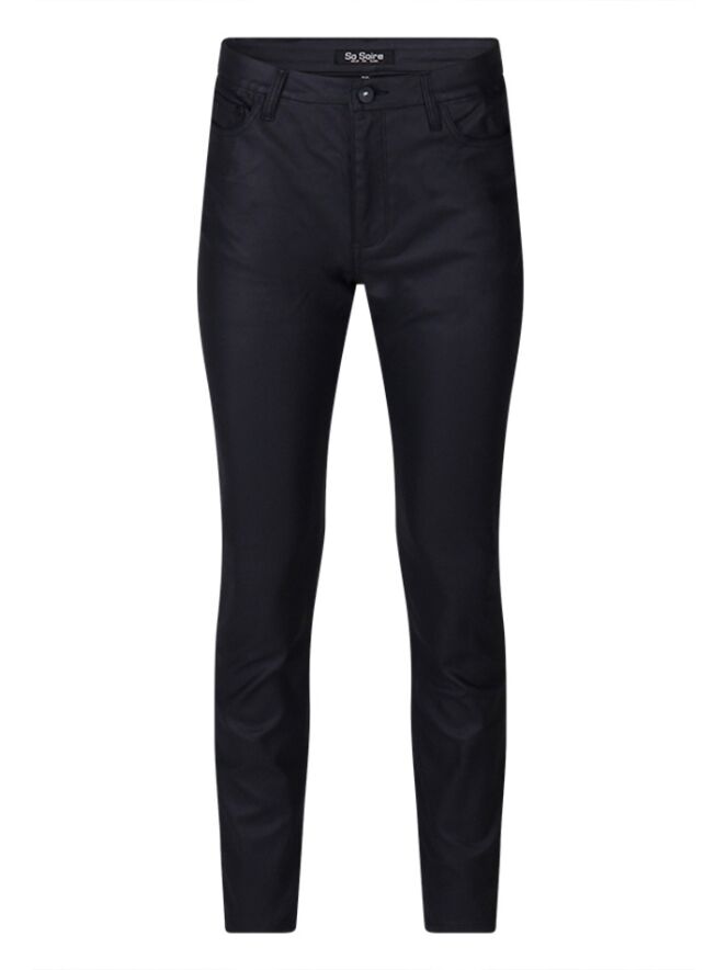 Fraaie broek met een PU coating in zwart, taupe of brons. Deze broek is een 5-pocket model en heeft een push up fit. Zit comfortabel door de superstretch formule. Combineer het met een top of trui en laat de kleuren speels terugkomen voor een extra matchende outfit.