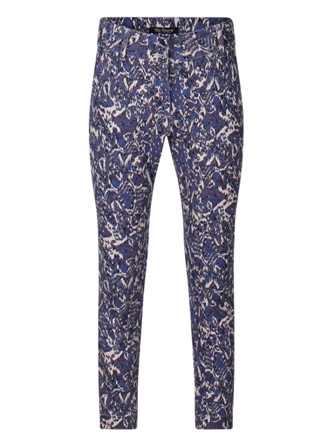 Fraaie chino pantalon met een aquarel patroon. Deze broek heeft steekzakken en sier paspelzakken achterop. Deze broek is leuk te combineren met een effen gekleurde top, sweater of trui. Net even anders. Who dares?