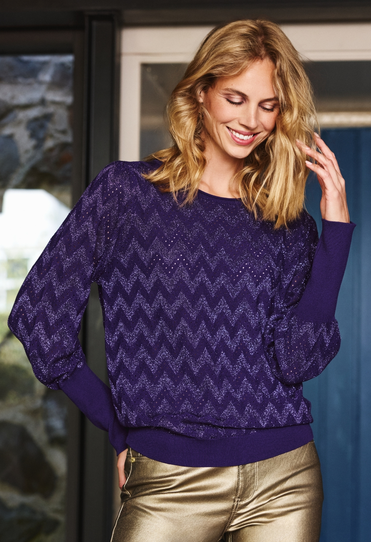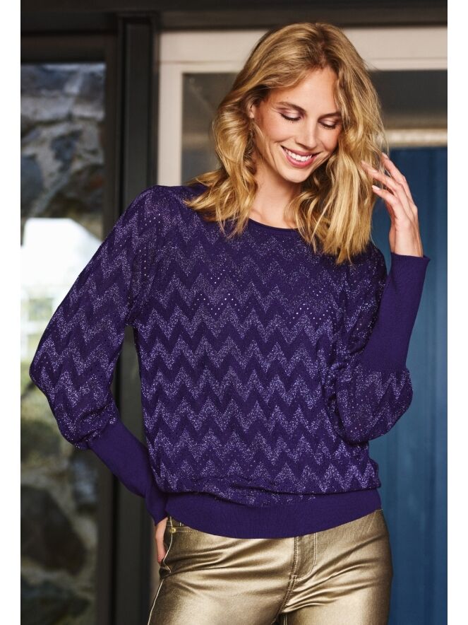 Trui met zigzag design, het design is voorzien met een lurexdraad wat een shine aan de trui geeft.