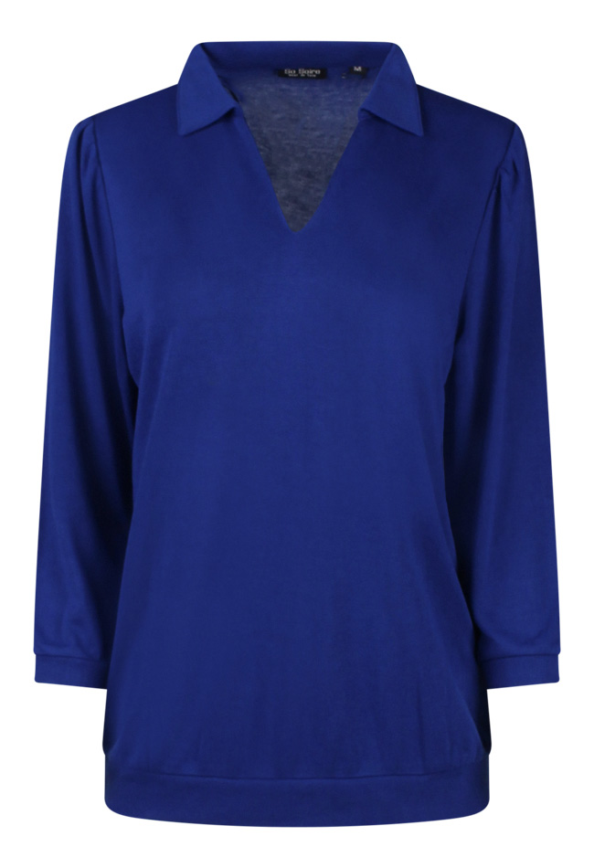 Deze basic damespolo met driekwart mouw heeft een band onder in de taille, kleine pofmouw, V hals en het welbekende polo kraagje. Casual te dragen naar iedere gelegenheid!