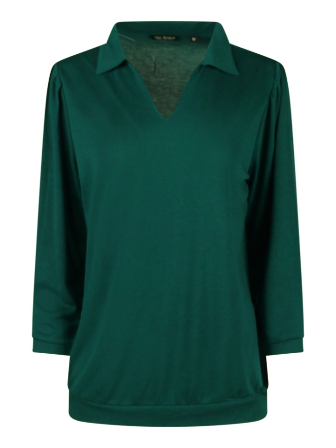 Deze basic damespolo met driekwart mouw heeft een band onder in de taille, kleine pofmouw, V hals en het welbekende polo kraagje. Casual te dragen naar iedere gelegenheid!