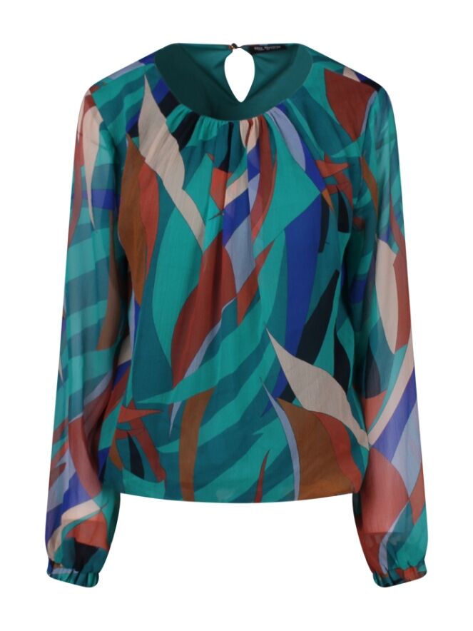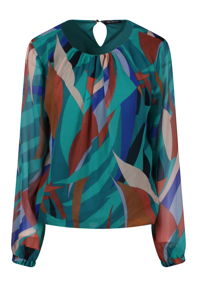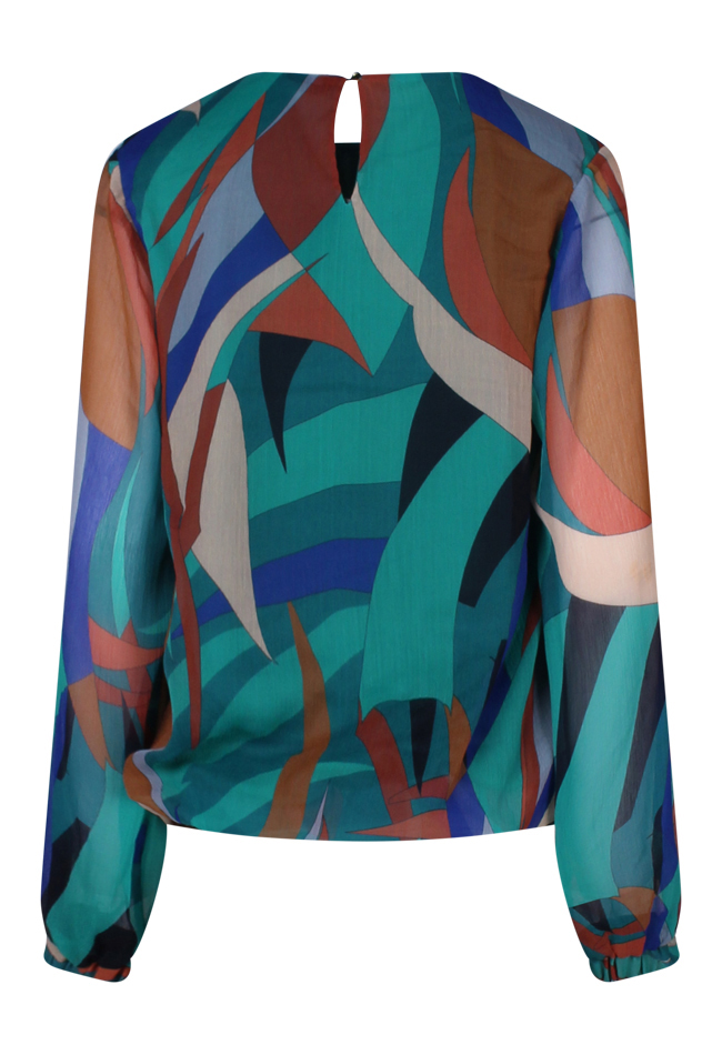 Deze luxe multicolor top is dubbelwandig. De bovenstof is van chiffon en geeft het geheel een sjiecke uitstraling. De mouwen zijn echter niet dubbelwandig en zijn volledig van chiffon en hierdoor ook iets doorschijnend. Achter op de hals zit een kleine druppel uitsparing welke gesloten wordt met een knoopje. Casual look? Combineer het met een fijne jeans. Ga je voor netjes en sjieck? Draag het dan op een pantalon met een hakje.