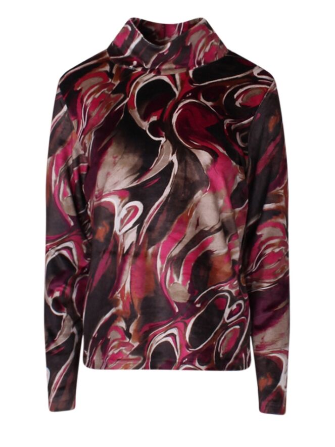Deze dames top met lange mouwen is gemaakt van zachte velours en heeft een marmerdessin. Voorzien van een col voor extra warmte en een stijlvolle uitstraling.