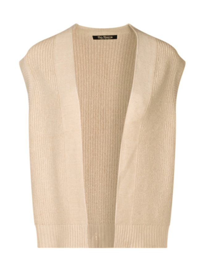 Dit gebreide giletje is net even anders doordat er een lurex glitterdraad doorheen zit geweven. Met een feestelijk tintje dus!