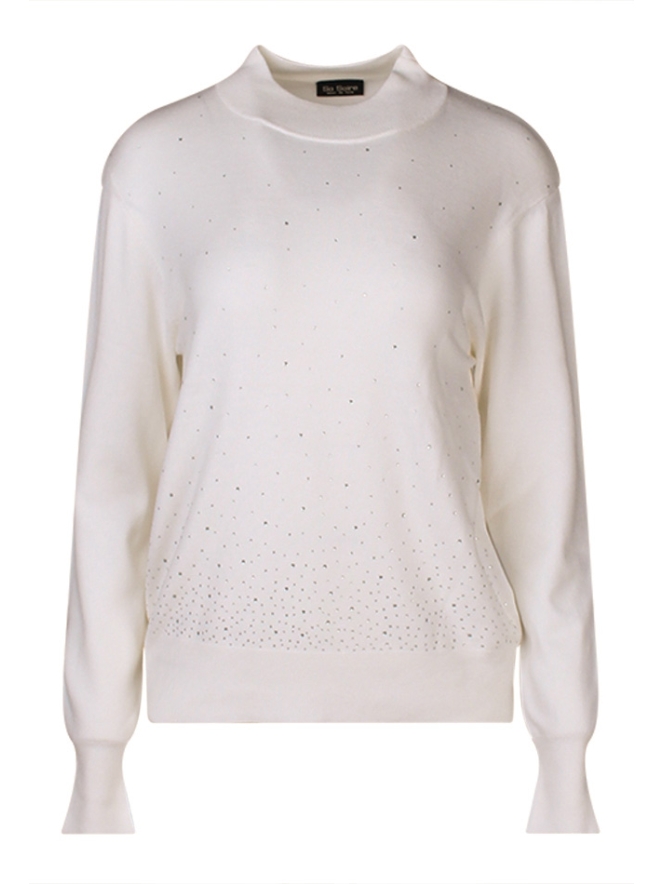 Deze dames fijngebreide trui is voorzien van strass steentjes op de voorkant en heeft een turtleneck voor extra warmte en een stijlvolle look.
