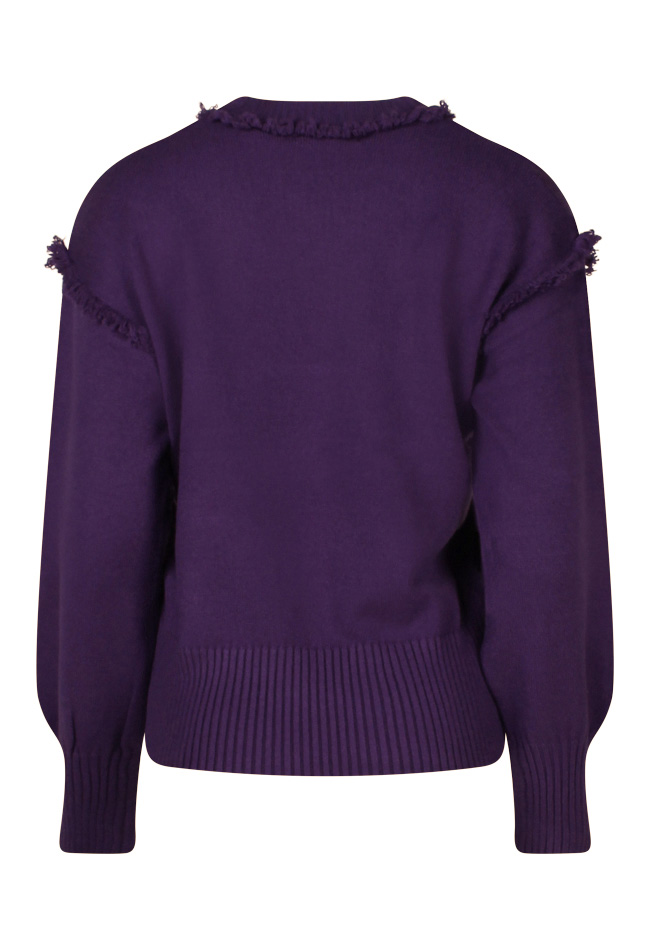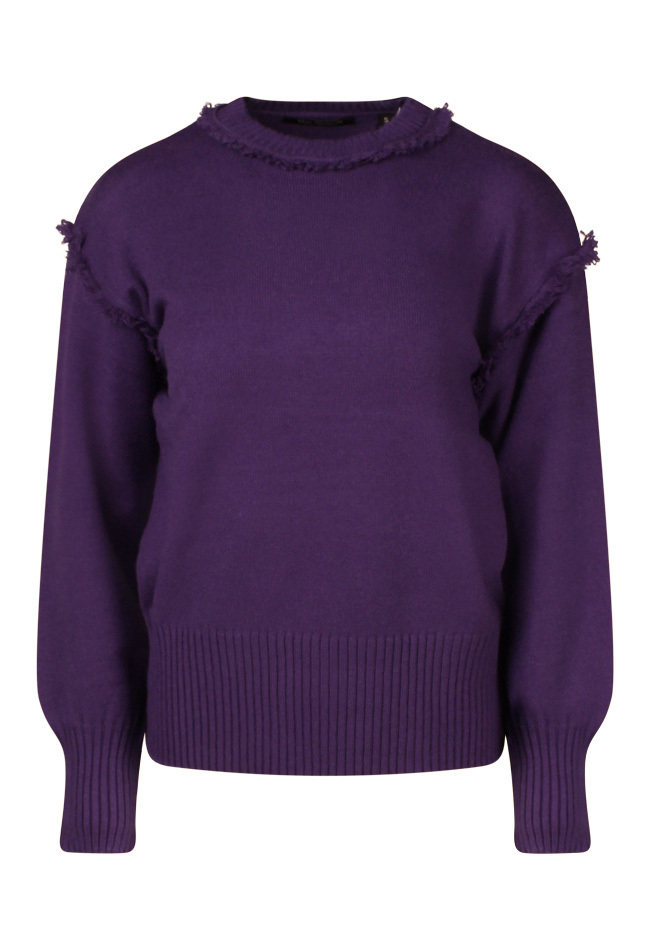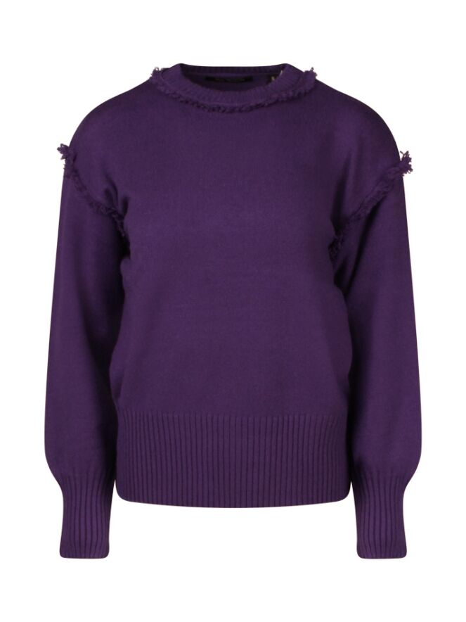 Deze dames trui heeft rond de hals en mouw inzet een rand met rafeltjes. Leuk! Net even wat anders! Te combineren bij iedere broek. Super makkelijk dus en comfortabel.