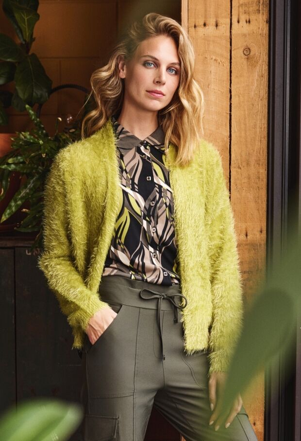 Hou je van zacht, warm en fluffy? Dan is dit vestje voor jou! Dit overslag vestje is gemaakt van featheryarn wat het vestje een zacht aaibaar pluizig uiterlijk geeft. Het model is wat korter met onder in de boord een glittertje.