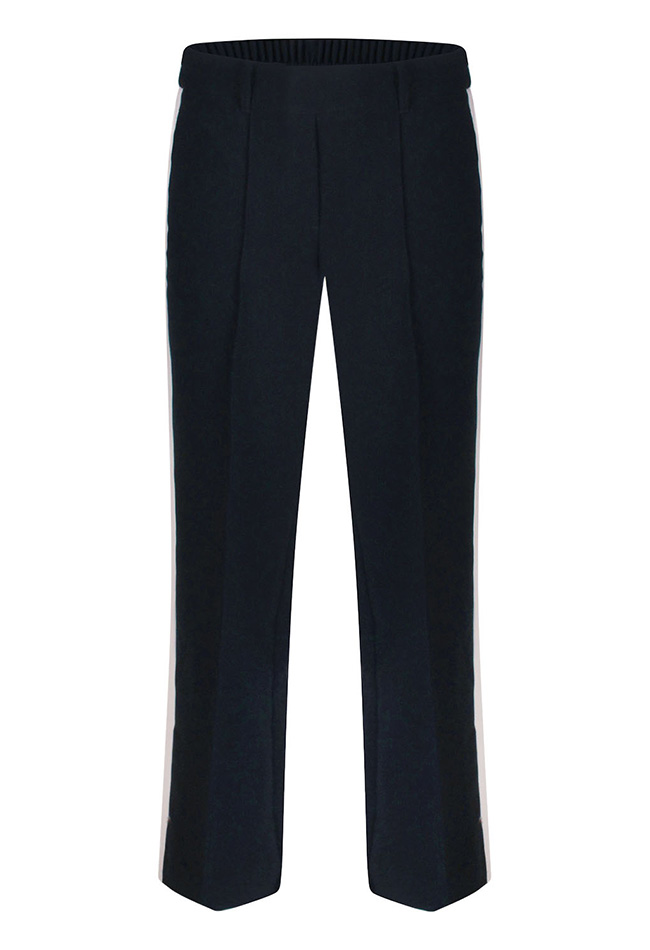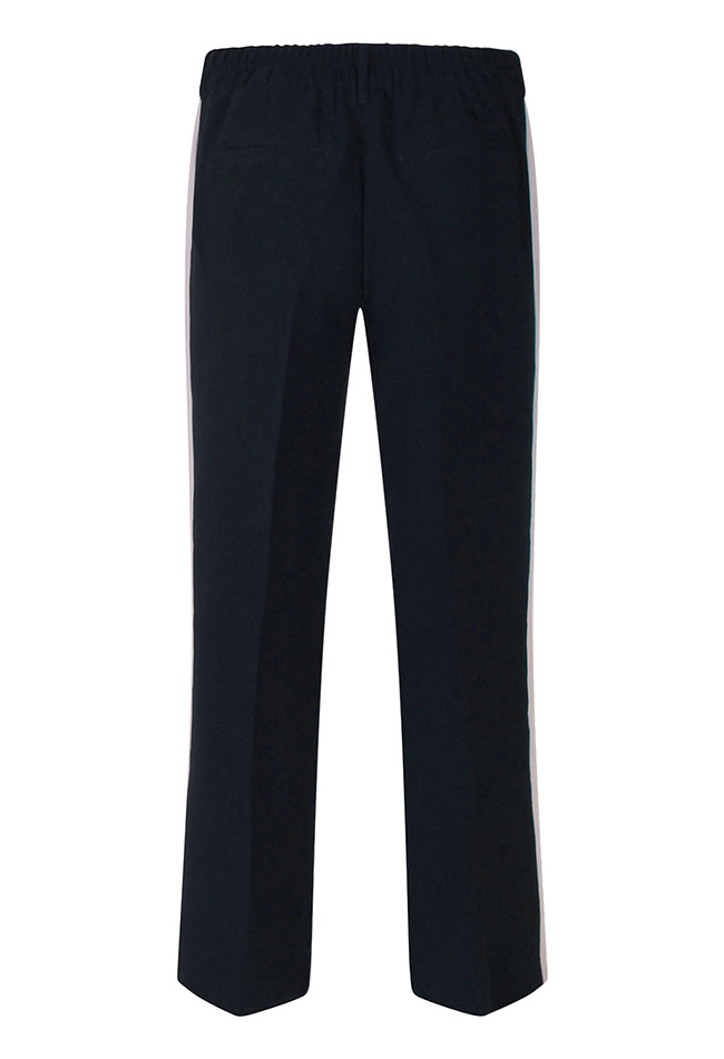 Deze pantalon combineert comfort met een moderne, trendy uitstraling. De trendy streep op de zijkant geeft een sportief en eigentijds detail, terwijl het opnaadje over het voorbeen de look verfijnt. De wijde pijpen zorgen voor een stijlvolle, vloeiende pasvorm en de steekzakken maken het praktisch én casual-chic. Perfect om te combineren met een blouse, T-shirt of top voor een complete, trendy outfit.