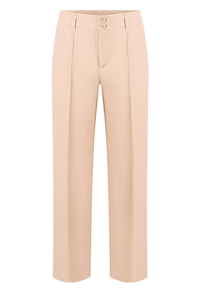 Deze stijlvolle dames pantalon met subtiel opnaadje is een tijdloze toevoeging aan je garderobe. De rechte pijp zorgt voor een elegante, flatterende pasvorm die moeiteloos combineert met zowel een zakelijke als casual look.