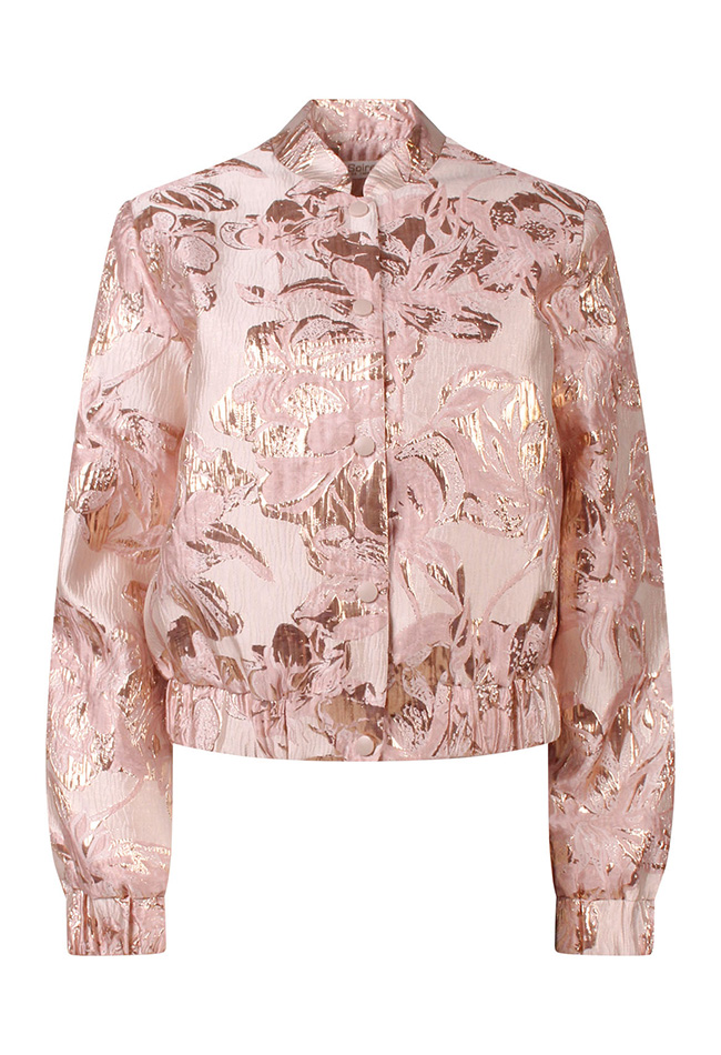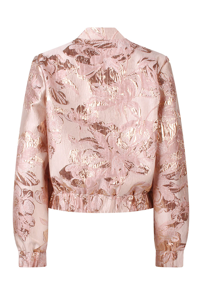 Deze brokaat bomber heeft een prachtig folie bloemdesign. Hij sluit met drukknopen maar is ook los leuk te dragen! Dit exemplaar is niet ontzettend dik en doet het dan ook goed als vestje! Blikvanger op en top!