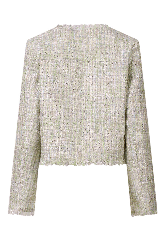 Prachtige boucle blazer met pailetten in de stof en vele rafel details. Deze blazer geeft je een elegante look. Een mooie pantalon maakt het plaatje helemaal af maar misstaat ook zeker niet op een mooie spijkerbroek. Zelfs Kate Middleton is gek op boucle blazers! Dan weet je het maar even ;-)