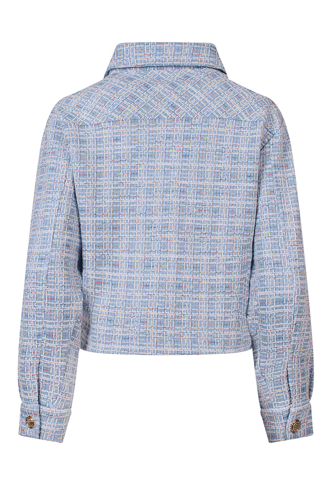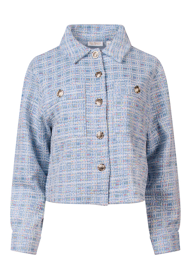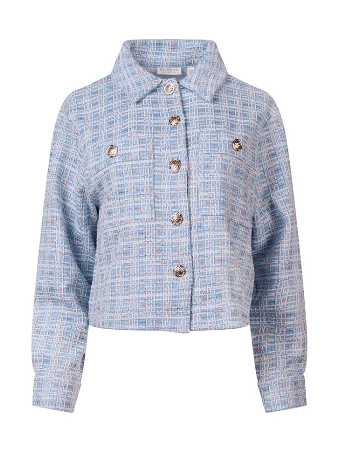 Mooie Jacquard blazer met een multi color motief in de stof. Deze blazer afgewerkt met goudkleurige knopen heeft 2 borstzakken en geeft je outfit een trendy klassieke twist. De stof valt soepel en daardoor draagt dit jasje ook erg comfortabel!