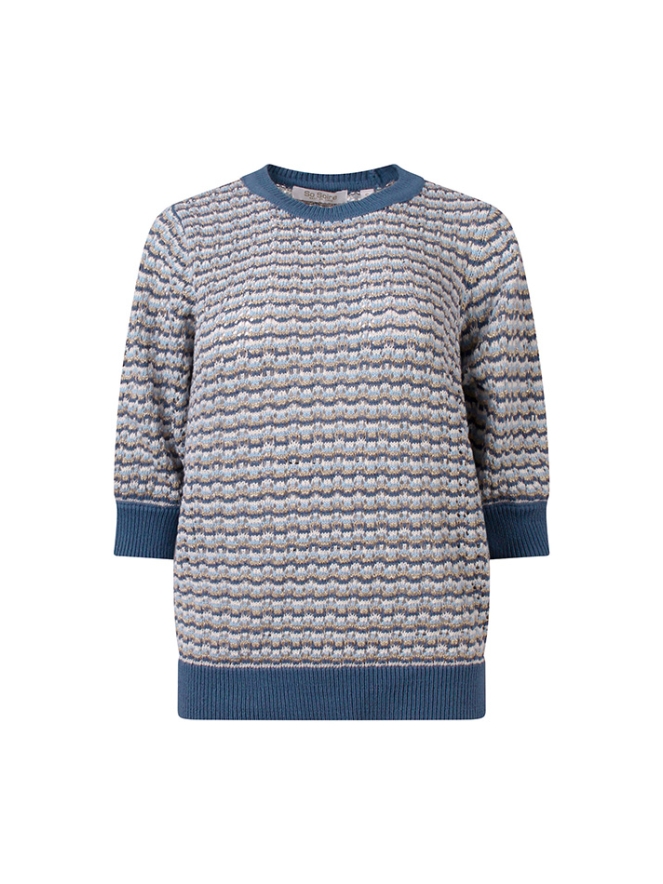 Prachtige trui met een open haakmotief en korte mouw. Draag er eenvoudig een hemdje onder en deze trui doet de rest!