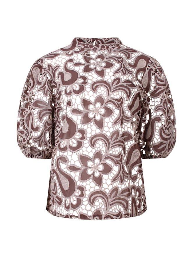 Prachtige lace top met bloemen borduur patroon. Het is een flink 'open' patroon, het dragen van een hemdje of singlet onder deze sjiecke top wordt wel aanbevolen. De top is een echte blikvanger en geeft je outfit een classy look! Let op, de stof is delicaat en dient met zorg en toewijding behandeld te worden.