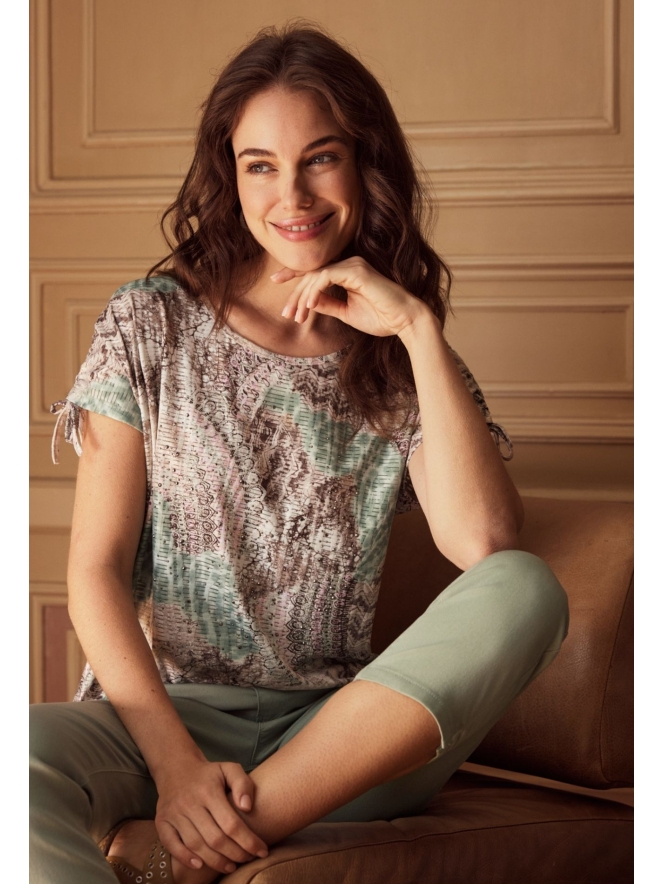 Prachtige top van So Soire met teveel details om op te noemen. Dit shirt heeft op het voorpand vele strass stenen, een trekkoordje over de schouder en elastiek in de taille om het shirt elegant te laten bollen.